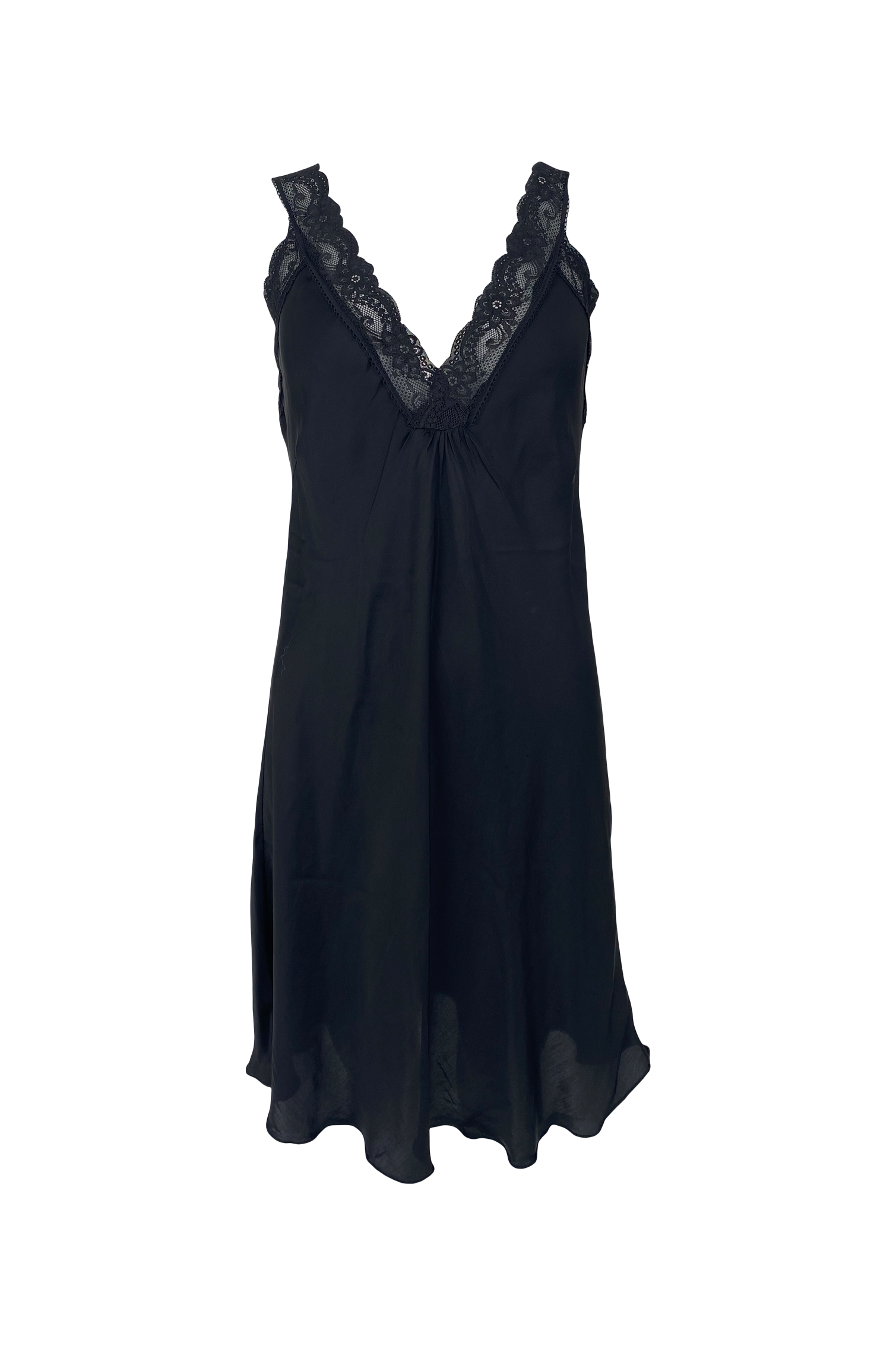 Svart viskos klänning med spets i halsringen.