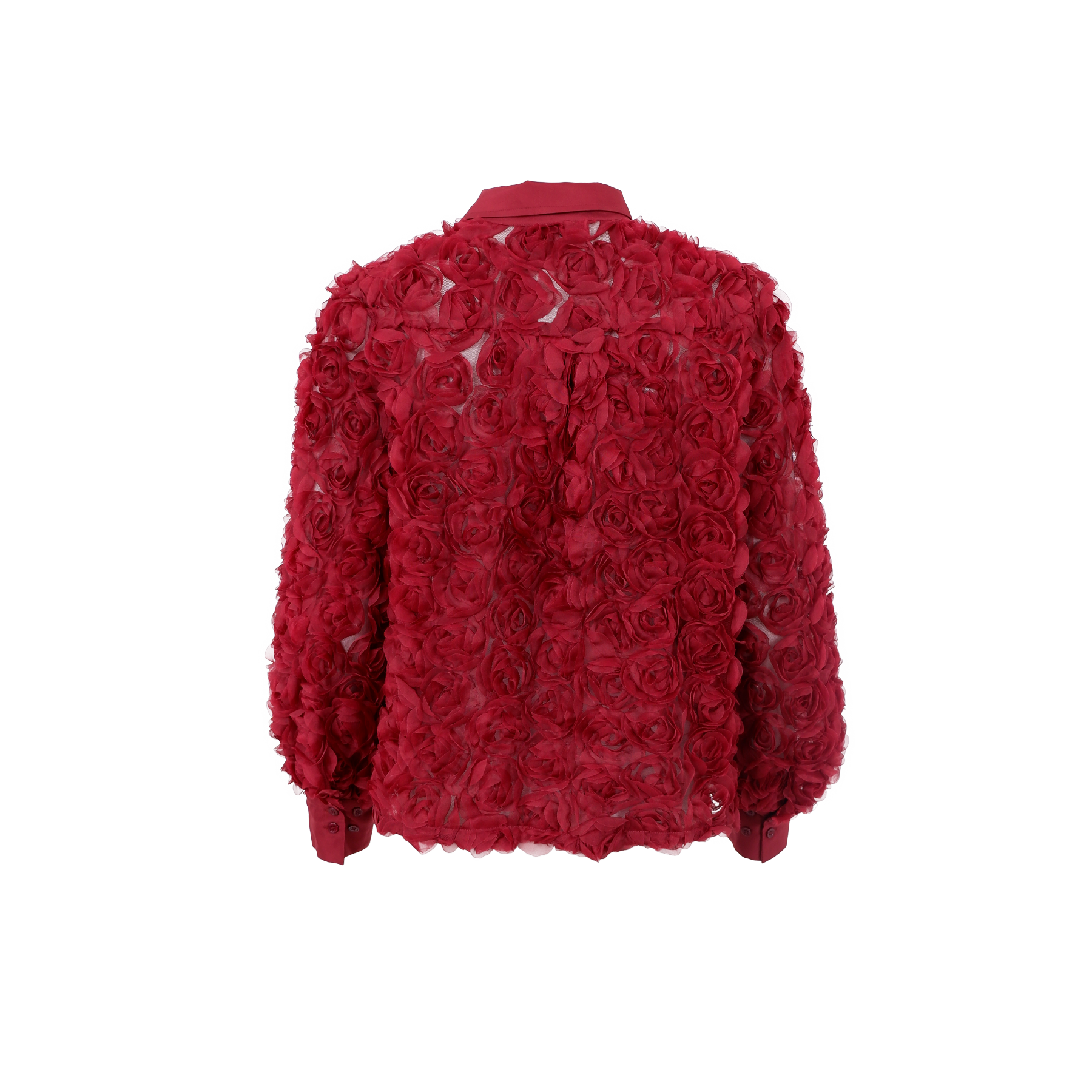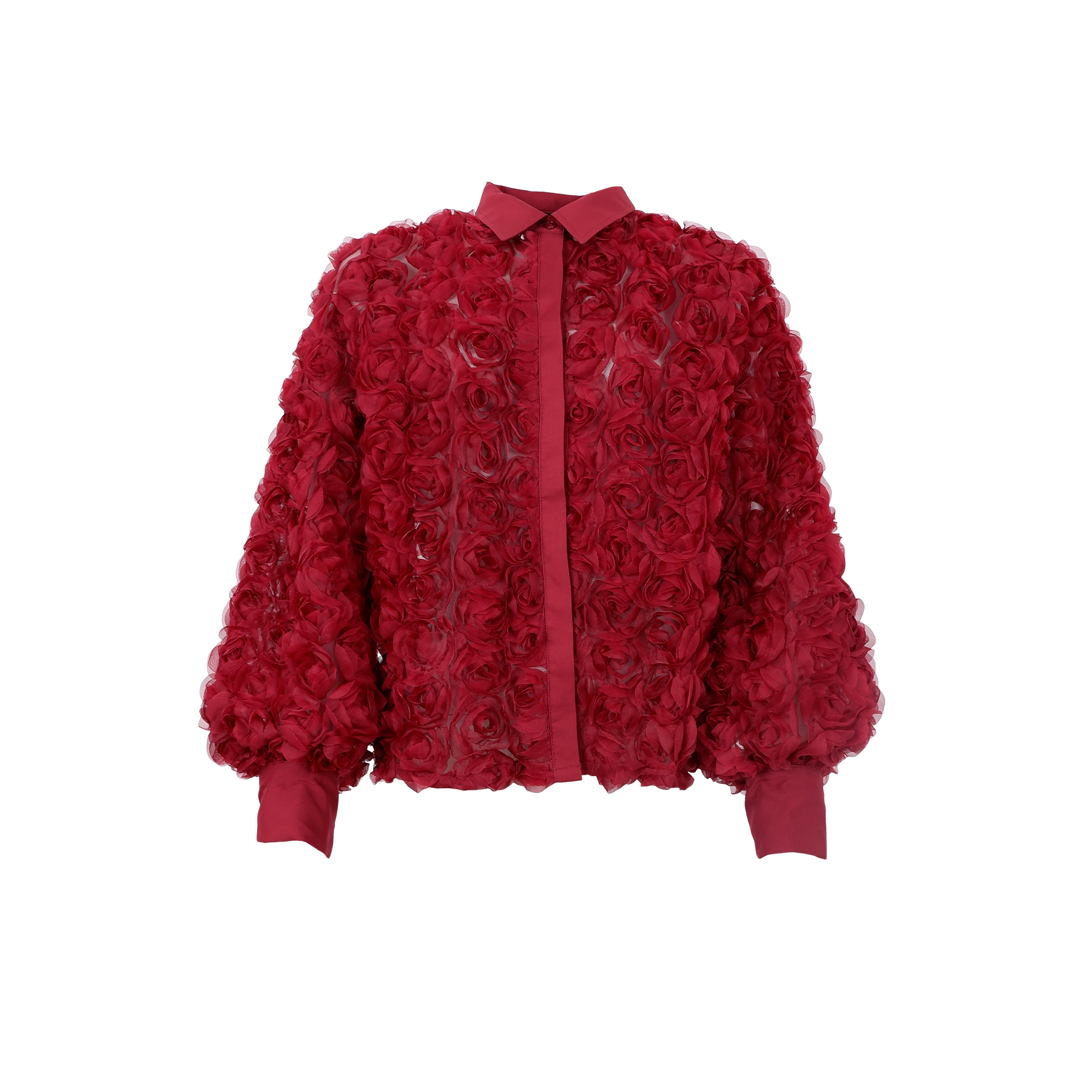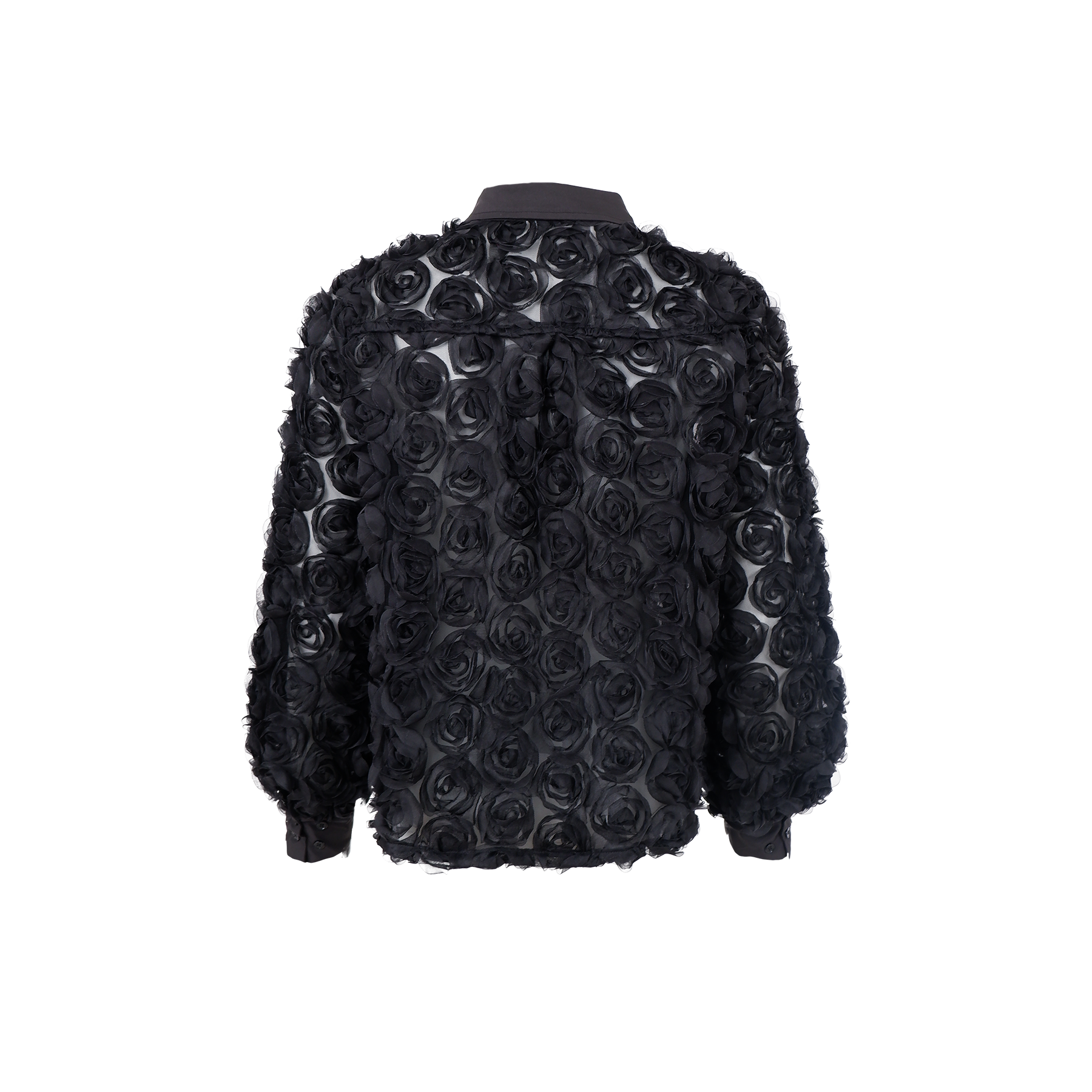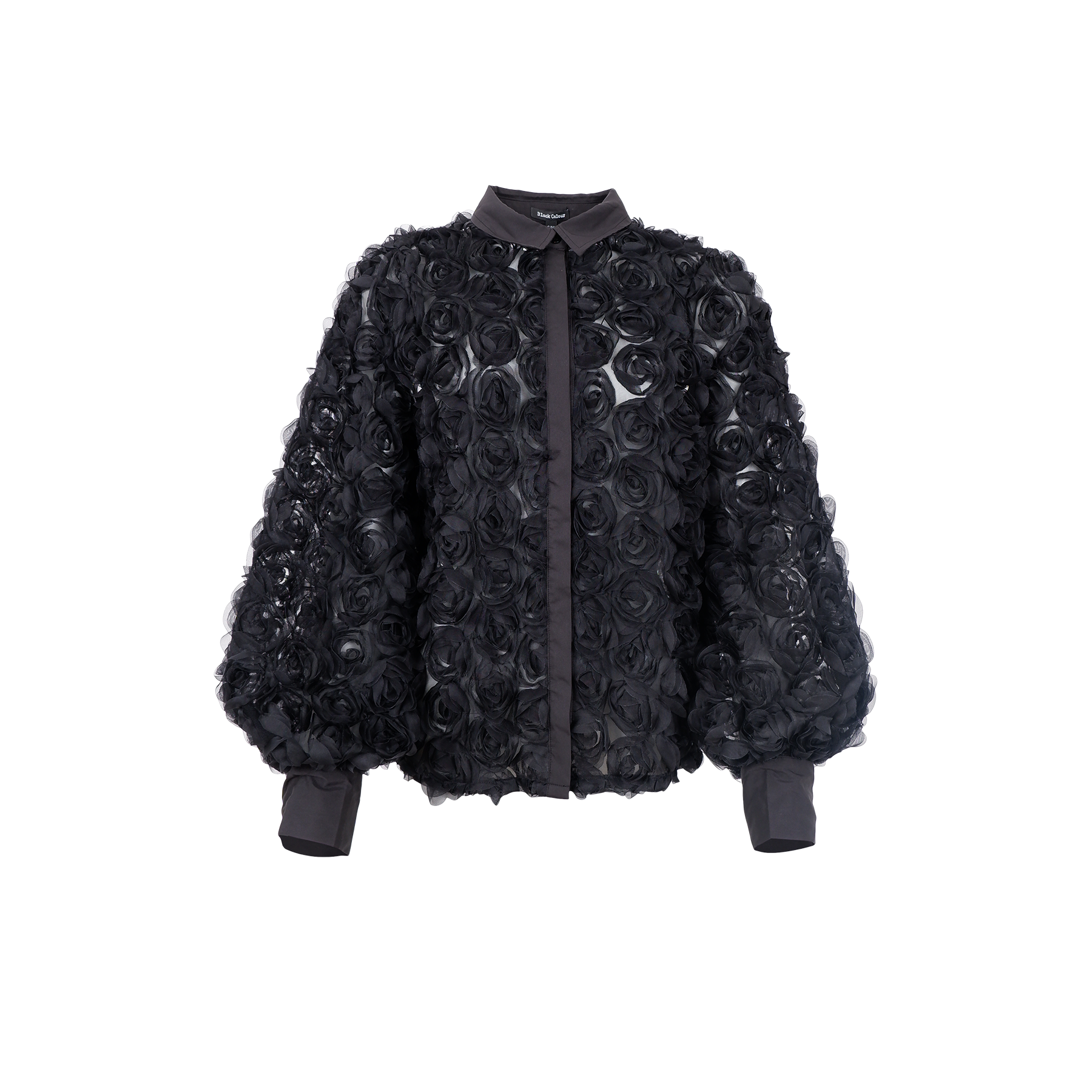 Chiara skjortan har en unik 3D-blomdesign som ger både struktur och en exklusiv känsla till varje outfit. Den lätt transparenta kvaliteten skapar en fin kontrast till de uttrycksfulla detaljerna.