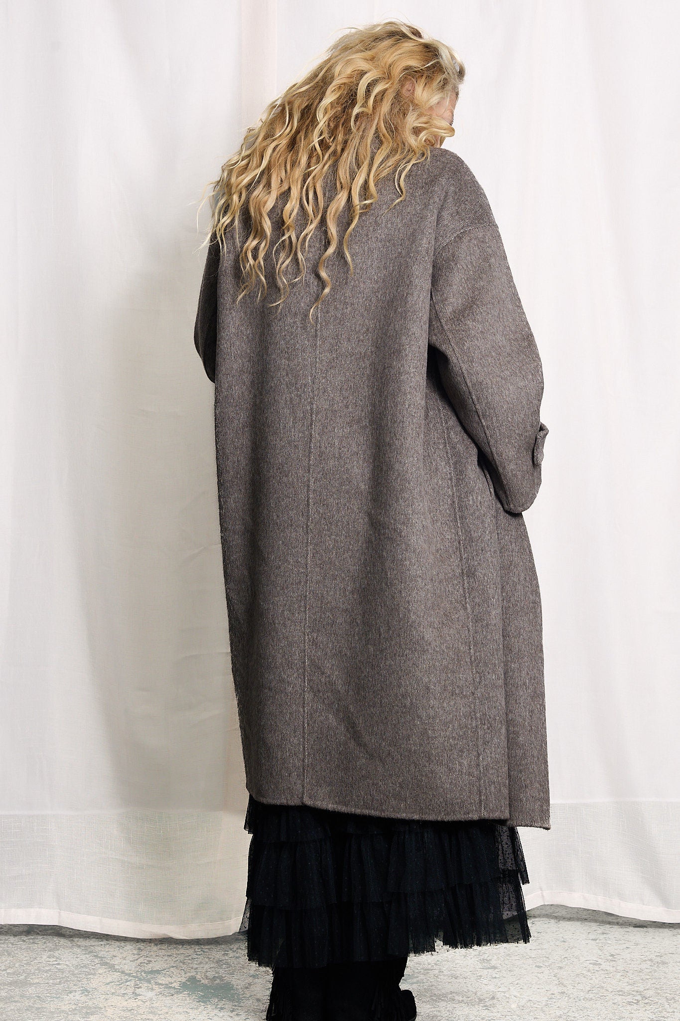 En elegant och tidlös lång kappa med långa ärmar och dubbelknäppt stängning. Materialmixen av 50 % ull och 50 % polyester ger både värme och en fin form. En klassisk kappa som passar lika bra till vardags som till mer uppklädda tillfällen.