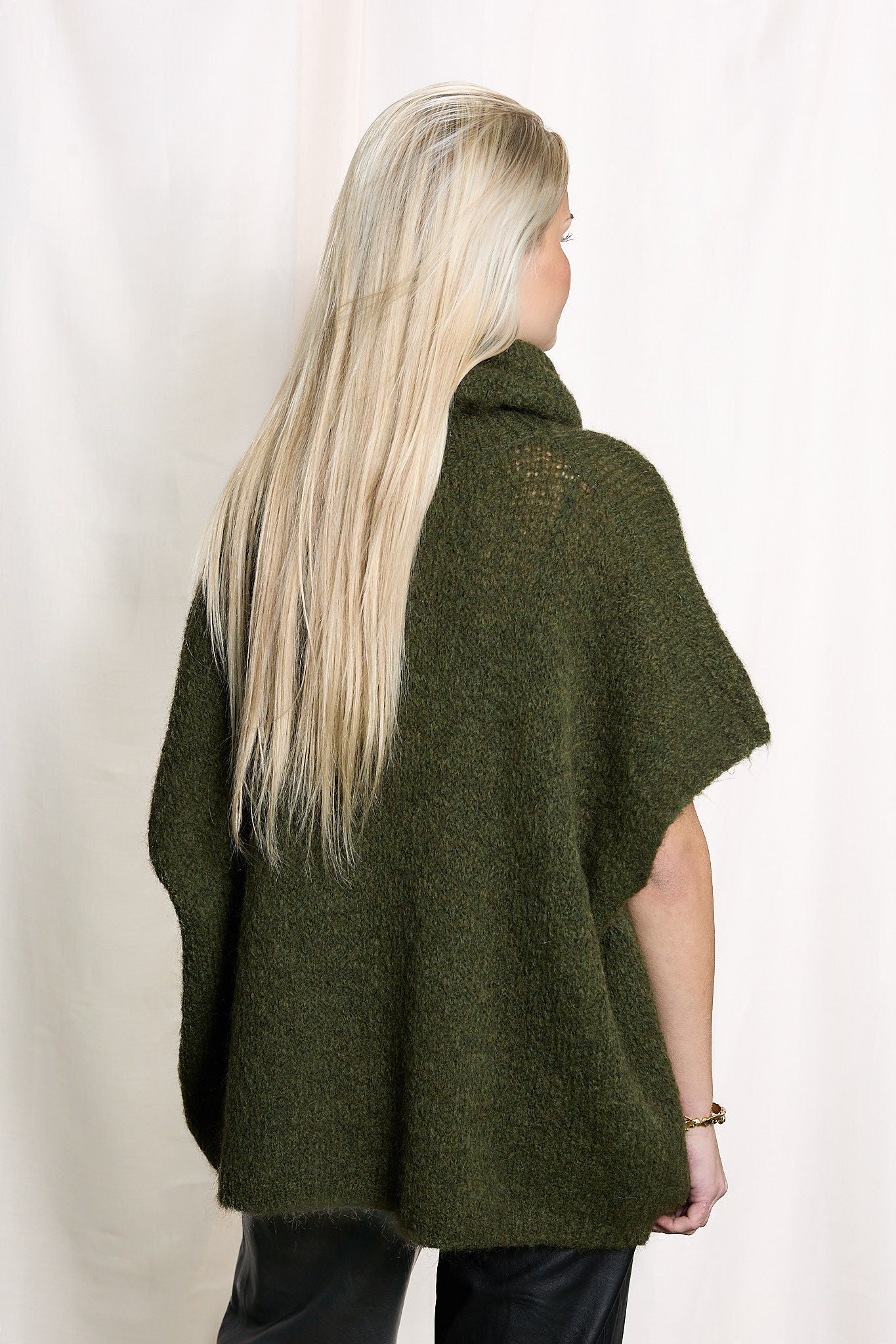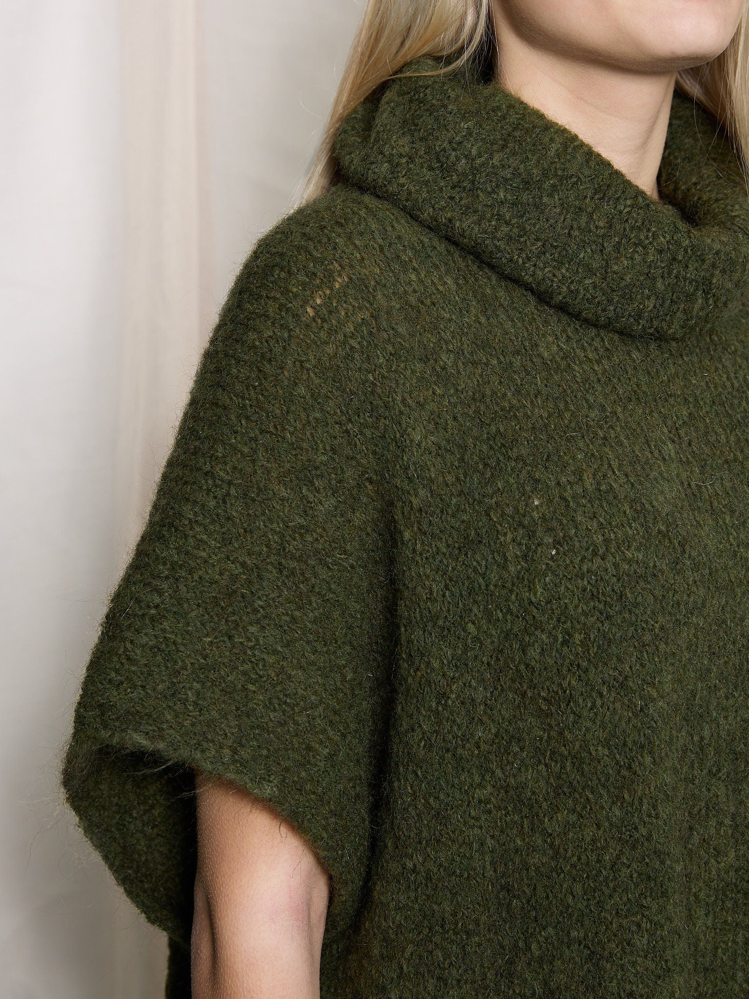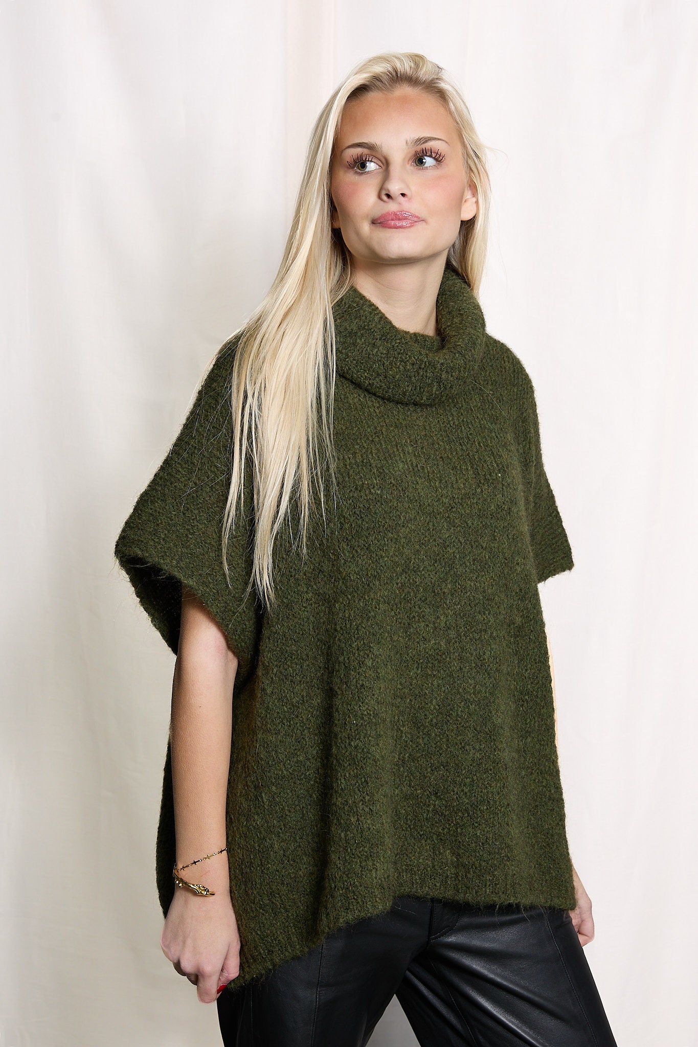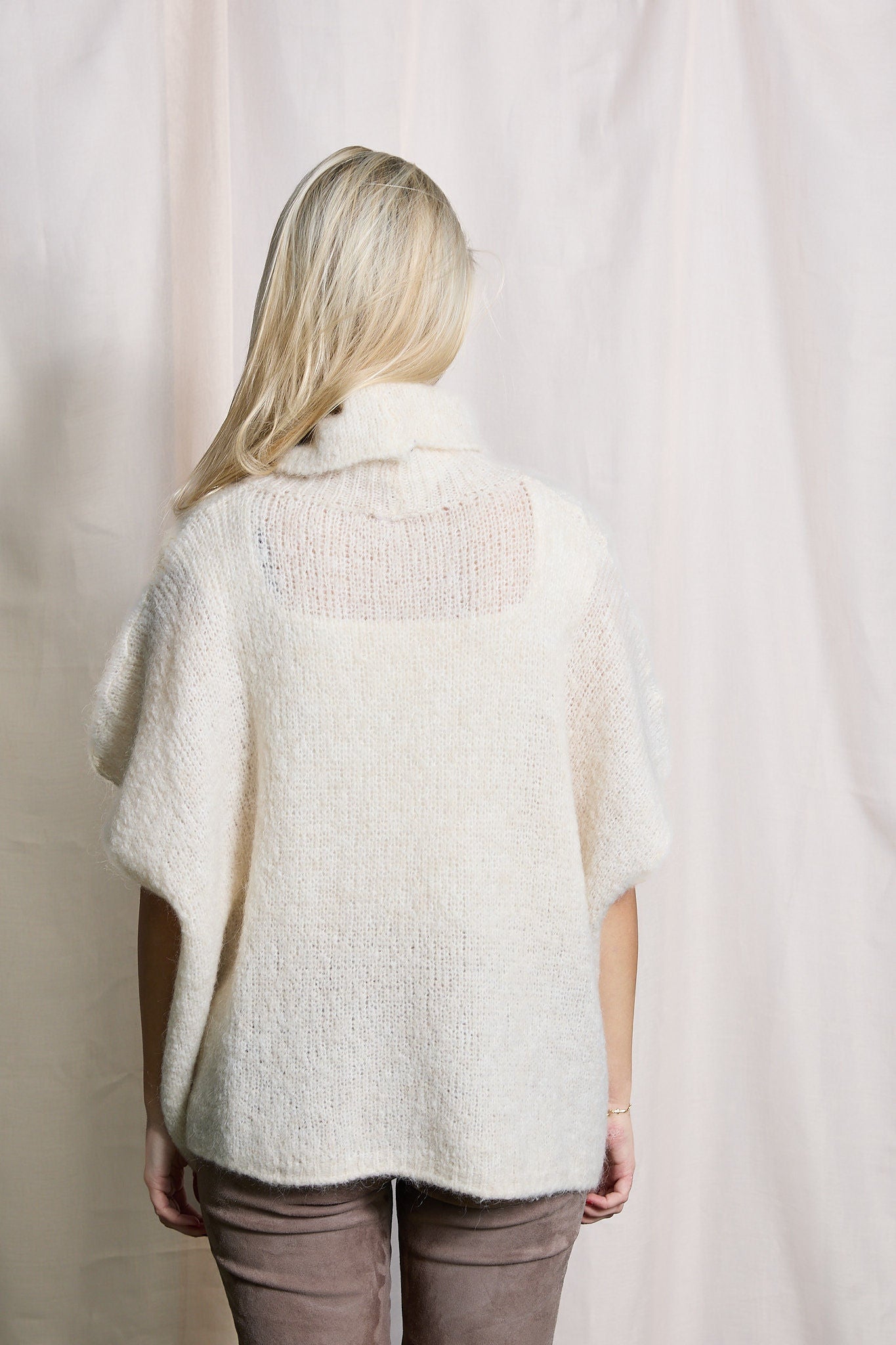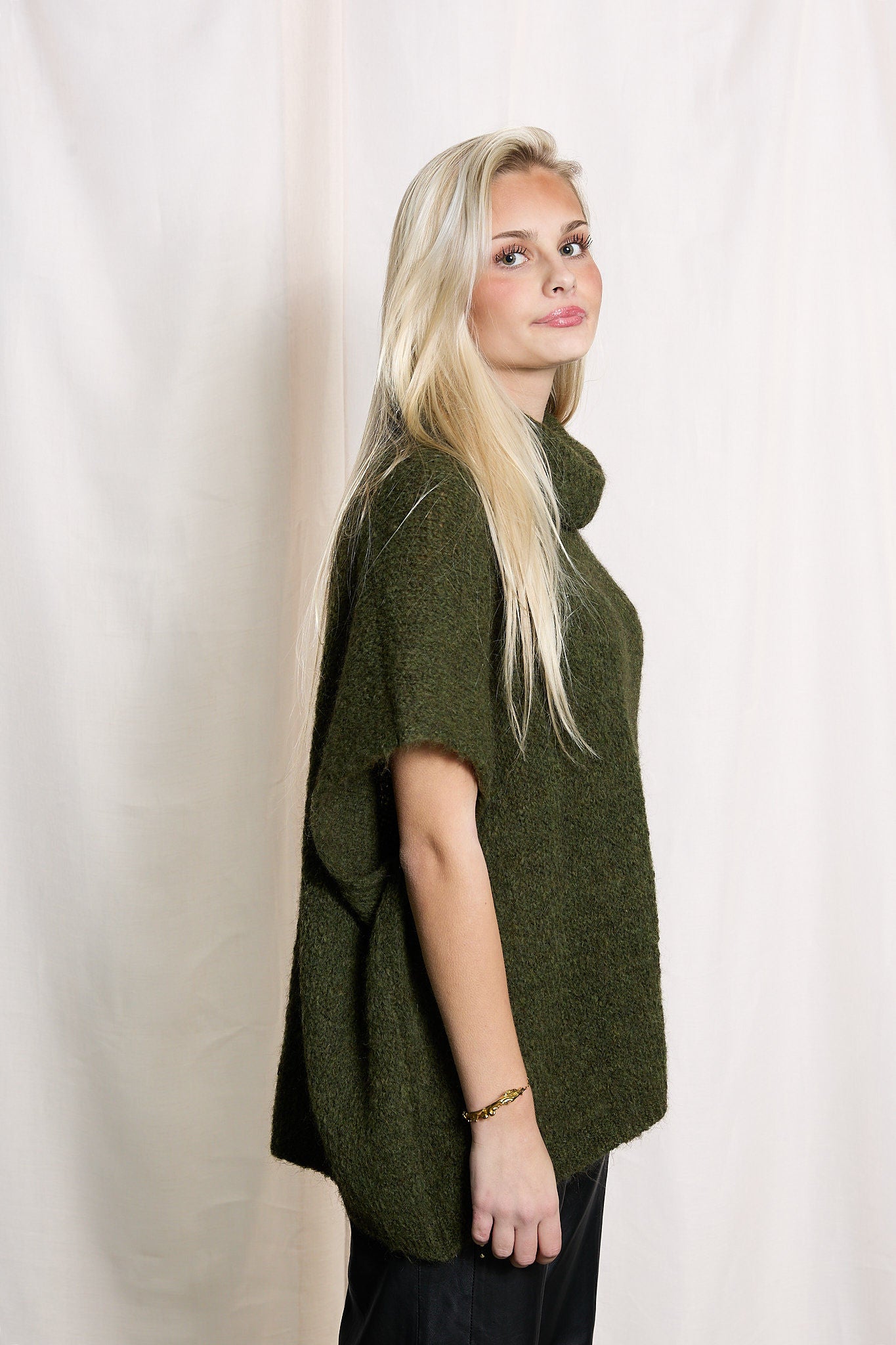 En mjuk stickad topp med korta ärmar och avslappnad passform. Den höga polokragen ger ett stilrent uttryck.