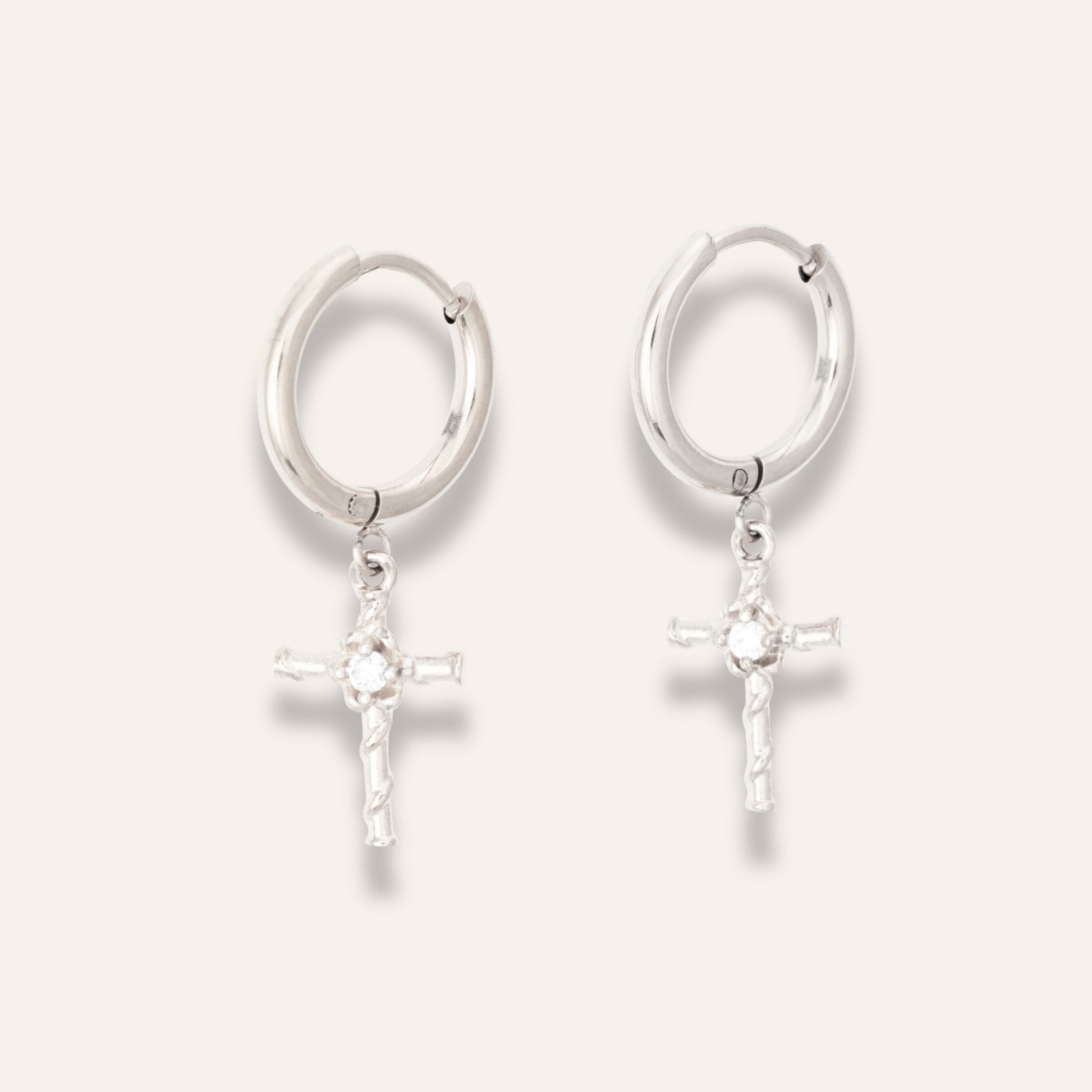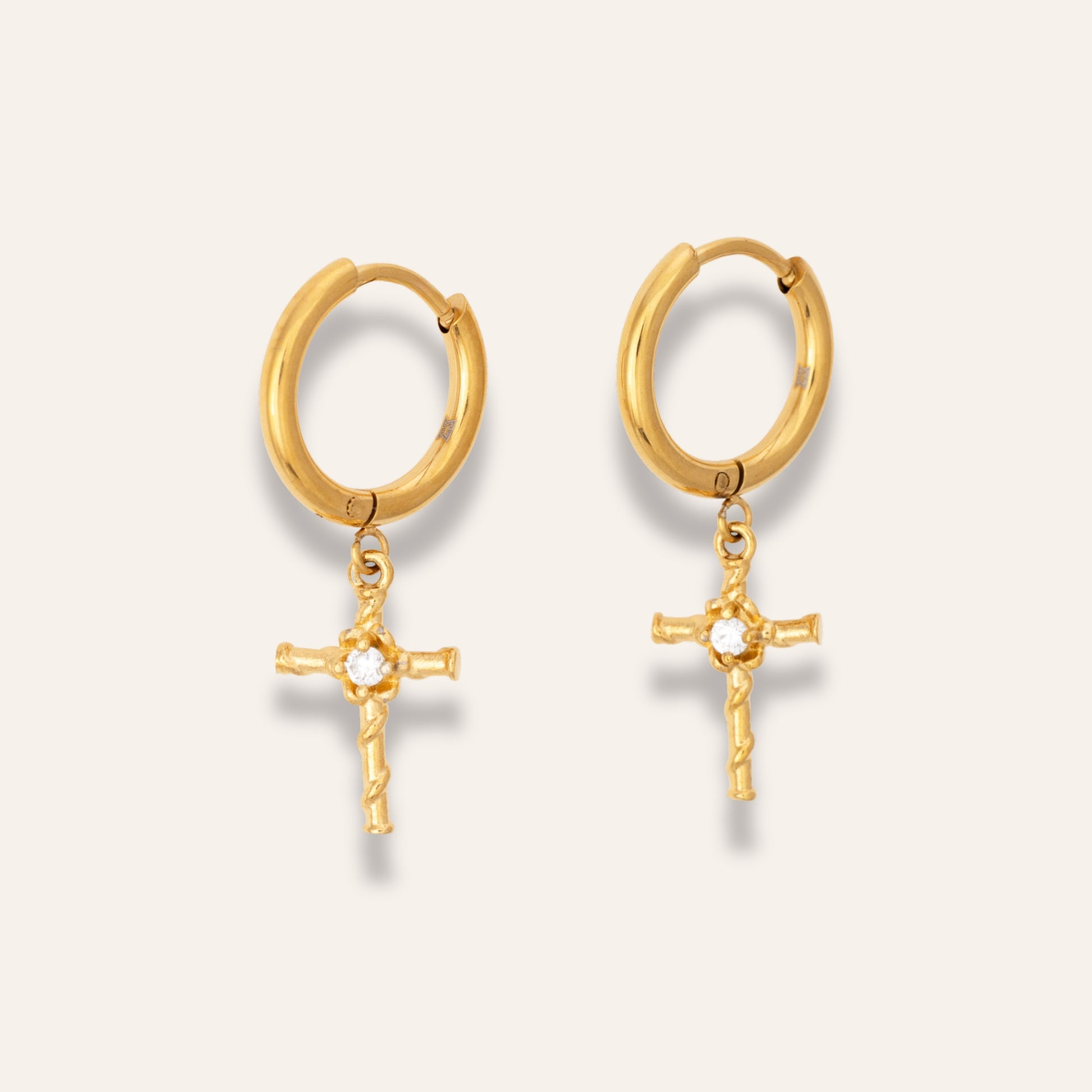 Dessa stilrena örhängena är tillverkade av kirurgiskt stål med en plätering i 18K guld. En tidlös design som kombinerar elegans med hållbarhet. Mått: 14x2 mm