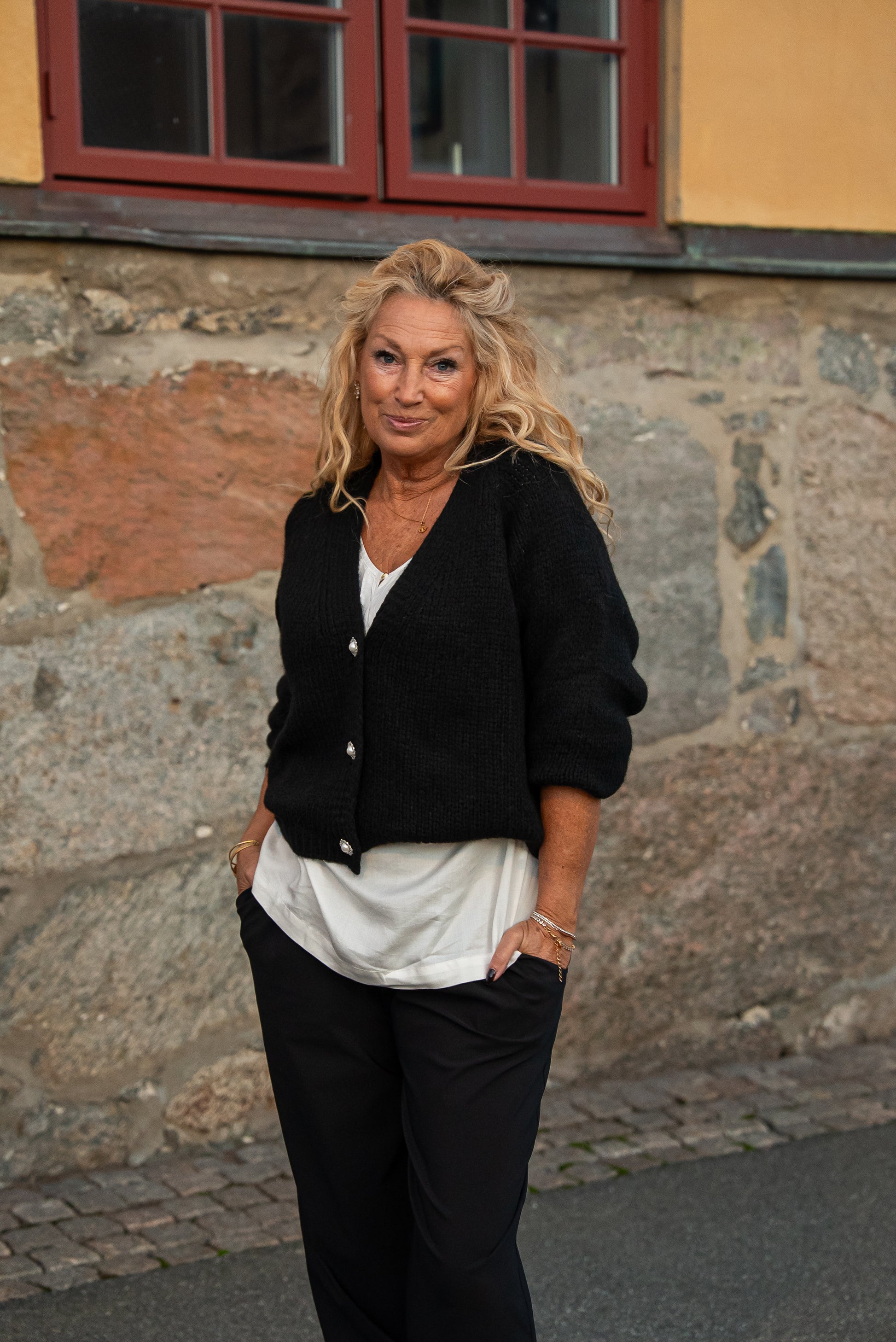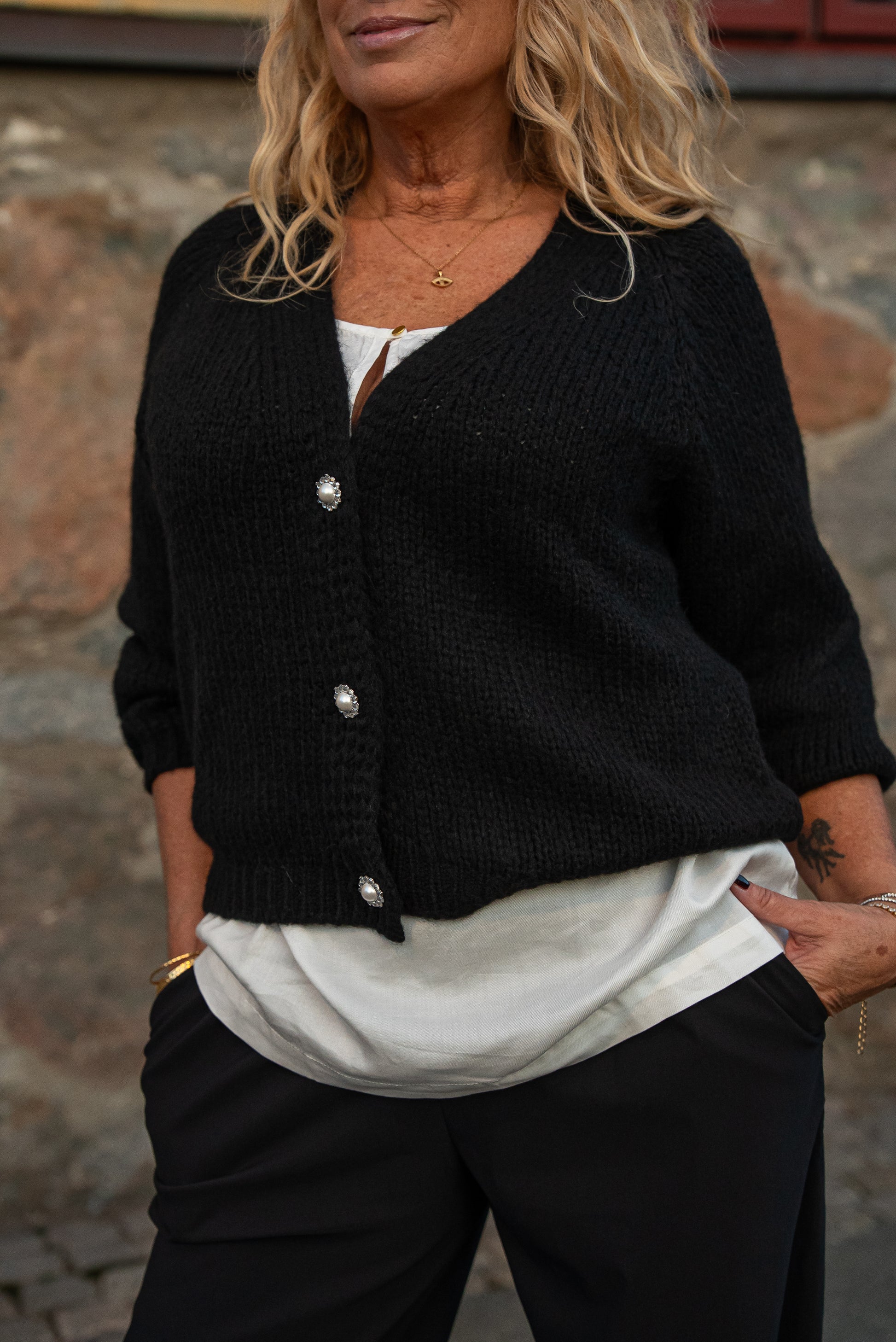 Elegant och bekväm stickad kofta med unika pärlknappar.