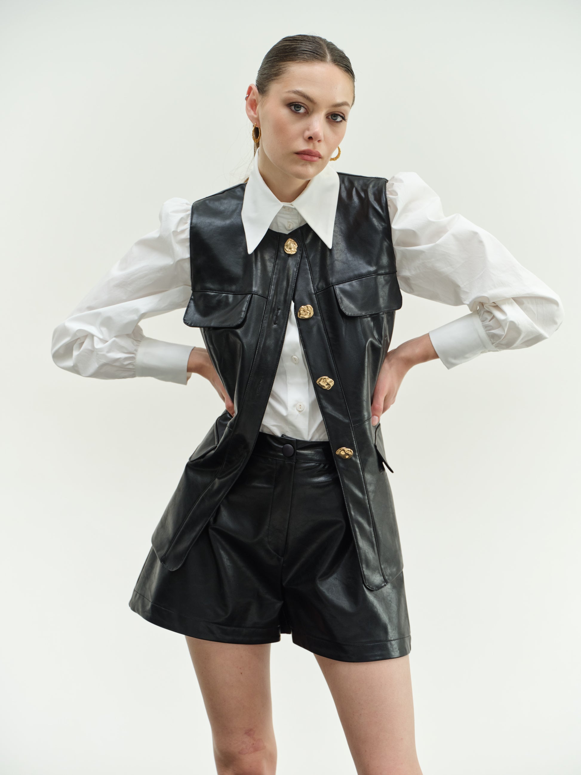 Stilrena högmidjade shorts i ekologiskt läder, perfekta för både vardag och utekväll. De har en figurnära passform med knapp och dragkedja framtill, samt praktiska sidofickor som ger både stil och funktion.