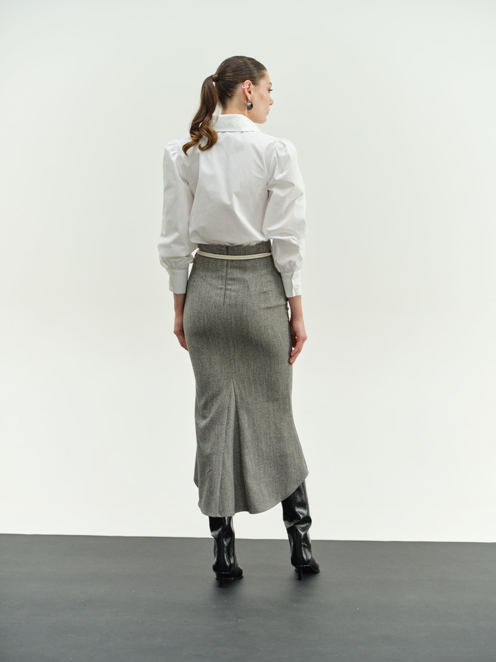 En elegant och sofistikerad midi-kjol, perfekt för både kontoret och mer uppklädda tillfällen. Den högmidjade designen framhäver figuren, medan dragkedjan baktill ger en ren och smidig silhuett.