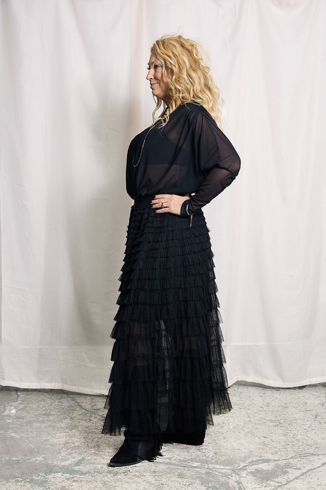 Denna svarta body I transparent mesh är ett stilfullt plagg med en modern och elegant känsla. Det tunna meshmaterialet skapar en diskret transparens som gör plagget perfekt för både vardag och kväll. Ett elegant basplagg som enkelt lyfter din outfit.